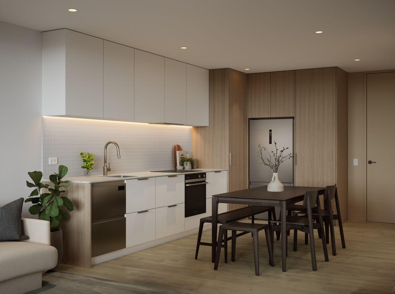 Set back from the main road, the Valley building offers a calmer, more sheltered living experience. Thoughtfully planned layouts and elevated positioning enhance light, outlook and a sense of connection to the surrounding neighbourhood, while the building’s contemporary form delivers a confident, modern expression of apartment living. Well suited to first‑home buyers and owner‑occupiers alike, Valley combines accessibility with lifestyle convenience in a location that keeps daily routines effortless.
